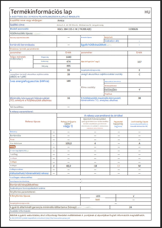 Amica KGCL 384 155-1W alulfagyasztós hűtőszekrény