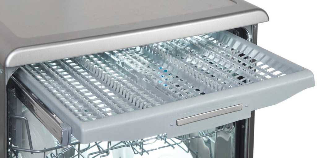 Felszerelt edénytartó Felső kosár kivehető és állítható magasságú, 4 összehajtható tányérszegmens az alsó kosárban