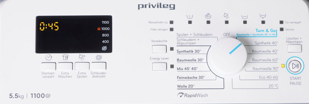 Gyors program: Műszál 30°Pamut 30° Vegyes 45°40° Kímélő 30° Gyapjú 20°